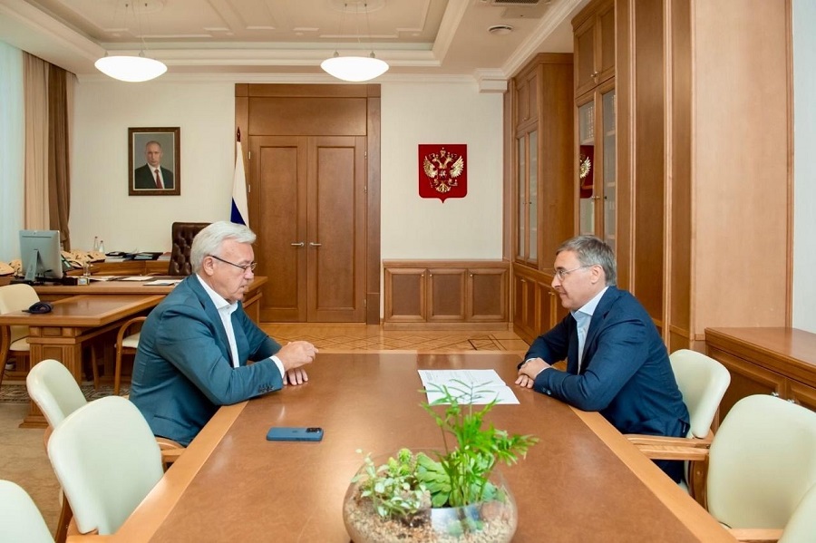 КРАСНОЯРСКИЙ КРАЙ, /НИА-КРАСНОЯРСК/. Экс-губернатор Красноярского края Александр Усс провел встречу с министром науки и высшего образования РФ Валерием Фальковым.