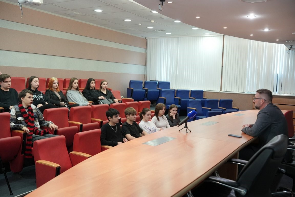 После «прогулки» по этажам здания администрации, где располагается и Городской Совет, студенты познакомились с председателем местного парламента Александром Пестряковым, заглянув к нему в кабинет. Спикер тепло поприветствовал юных гостей, пригласив их по окончании учебы в колледже присоединиться к рядам работников органов местного самоуправления.