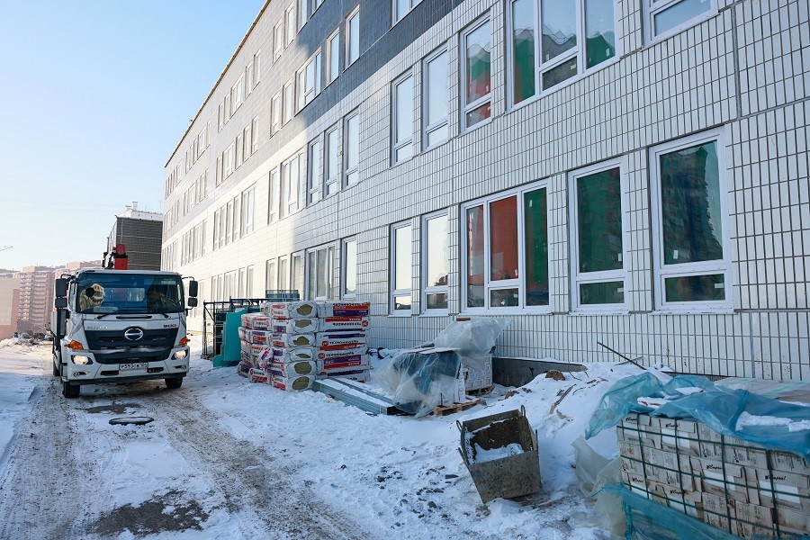 Учебное заведение площадью более 22 тыс. кв. метров рассчитано на 1100 человек в одну смену. На данный момент объект готов на более чем 60%. Завершены работы по монтажу каркаса здания. Идет монтаж перехода между блоками здания. Закрыт тепловой контур, запущено отопление. Ведутся черновые и чистовые отделочные работы. Как отчитался застройщик – строительство идет без отставания от графика.