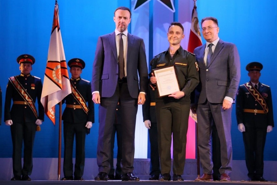 Военнослужащих, сотрудников правоохранительных и пожарных ведомств, членов «Боевого братства» и «Офицеры России», учащихся академии МЧС и кадетского корпуса, юнармейцев поздравили глава города Дмитрий Чернятин и председатель Совета депутатов Сергей Проскурнин.