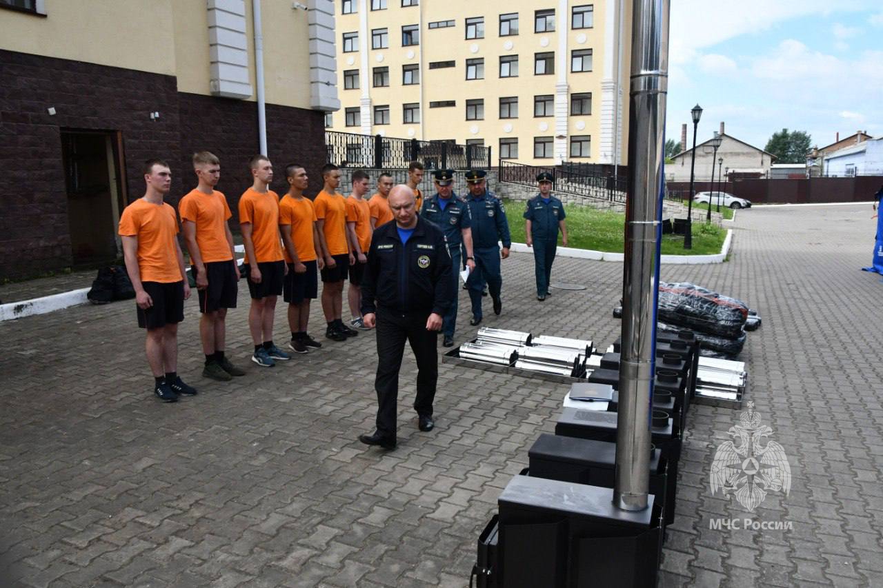 Начальник Сибирской пожарно-спасательной академии ГПС МЧС России генерал-майор внутренней службы Иван Сергеев провёл смотр нового имущества аэромобильной группировки,