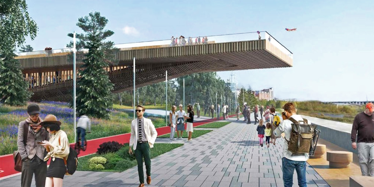 В победившей концепции был обозначен выход из парка на набережную через мост на Дубровинского, однако реконструкцию виадука вынесли в отдельное инвестпредложение стоимостью 560 млн рублей. Этот проект хотят реализовать к 2028 году.
