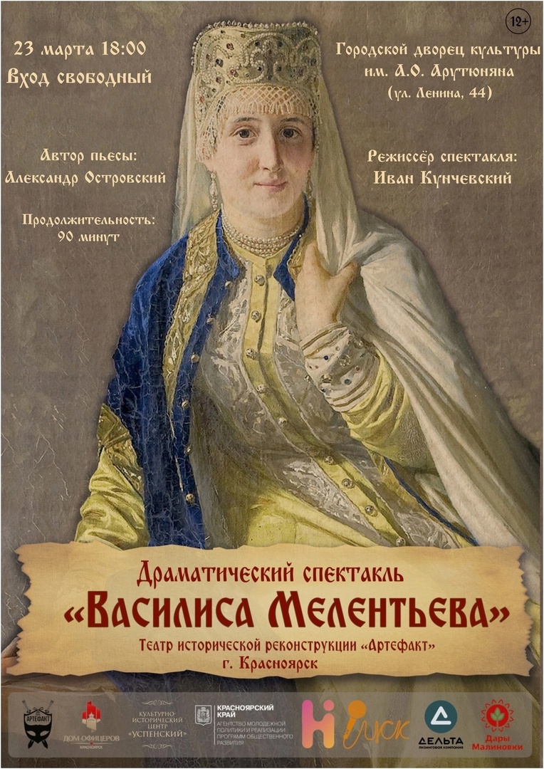 23 марта в Городском Дворце культуры имени А.О. Арутюняна состоится показ спектакля «Василиса Мелентьева», посвящённого 200-летию со дня рождения Александра Николаевича Островского Начало спектакля в 18:00!