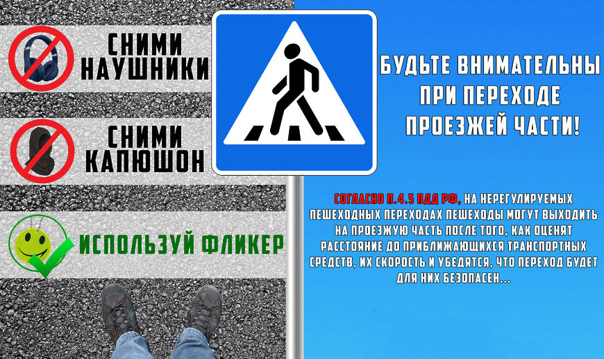Пешим участникам не стоит выходить на дорогу, не убедившись, что все водители во всех полосах движения вас заметили и остановились.
