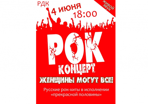 Районный Дом культуры приглашает гостей и жителей села на рок - концерт «Женщины могут всё»