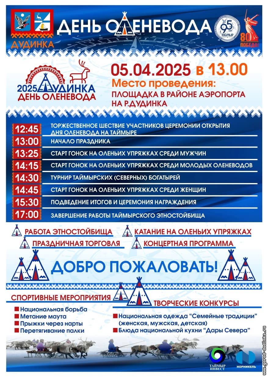Уже в эту субботу в районе аэропорта «Дудинка» состоится празднование Дня оленевода. Жителей и гостей города ожидает насыщенная культурная программа.
