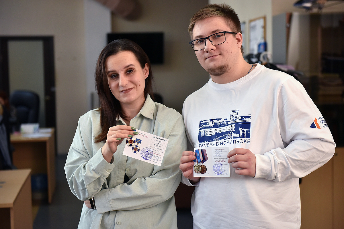 У ребят долго не получалось встретиться с представителем общественного совета: то отпуска, то командировки, то насыщенные трудовые будни. Награды искали коллег с осени 2024 года и догнали их только во вторую неделю февраля. Александра и Никита встретились с Иваном Анисимовым, который в торжественной обстановке вручил им награды.
