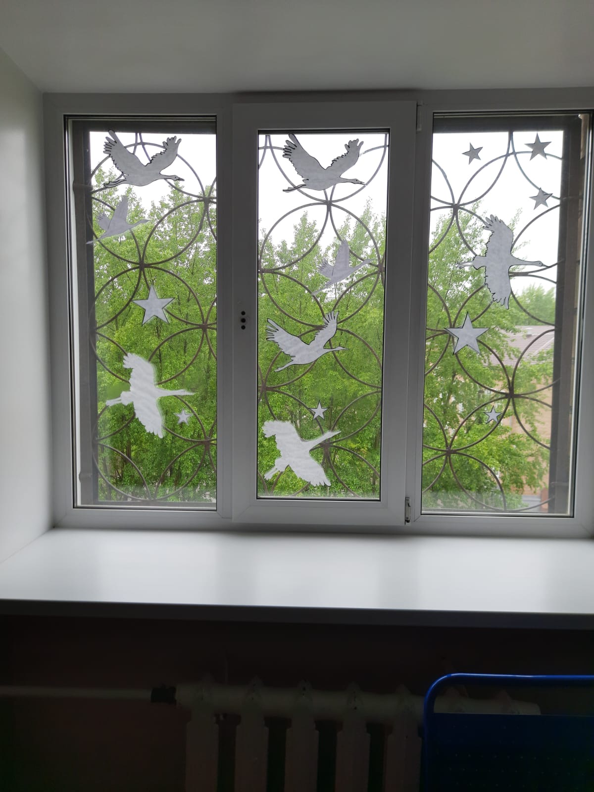ТВ рамках проведения акции «Окна Победы», тематически были оформлены окна в холлах лечебных отделений и административных помещениях. Пациенты совместно со специалистами отделения психосоциальной реабилитации создали композицию «Журавли»