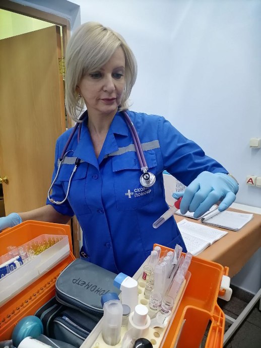 В августе будет 30 лет как Виктория Александровна трудится на скорой во благо здоровья красноярцев. Выбрала неотложку случайно. Хотела быть акушером, но коллеги, на тот момент уже работавшие в скорой, переманили. Постоянное движение, свобода и адреналин – вот за что фельдшер любит скорую. В реанимационной бригаде действия каждого медика отточены до мелочей. Ни одного пустого движения. Без суеты, без растерянности. Каждый знает, что нужно делать.
