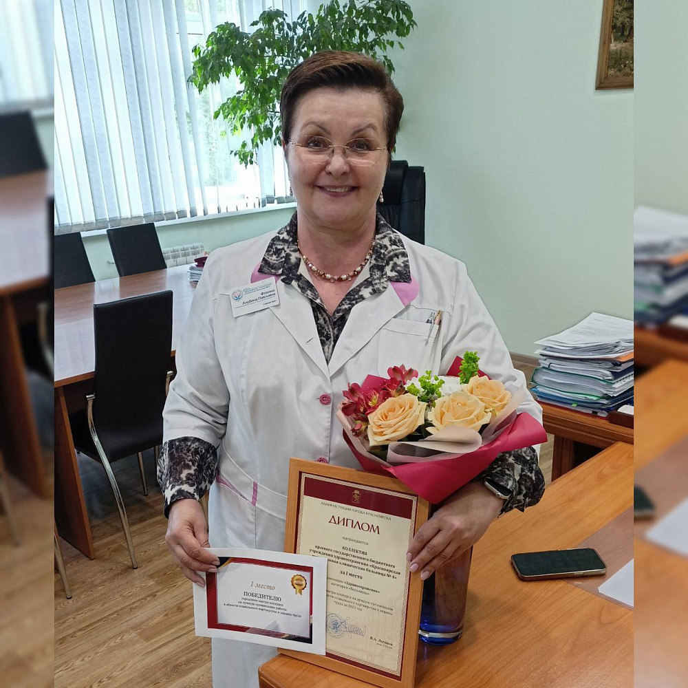 В торжественной обстановке главного врача Альбину Фокину поблагодарили за выдающиеся результаты работы учреждения и вручили диплом подписанный лично главой города Владиславом Логиновым.