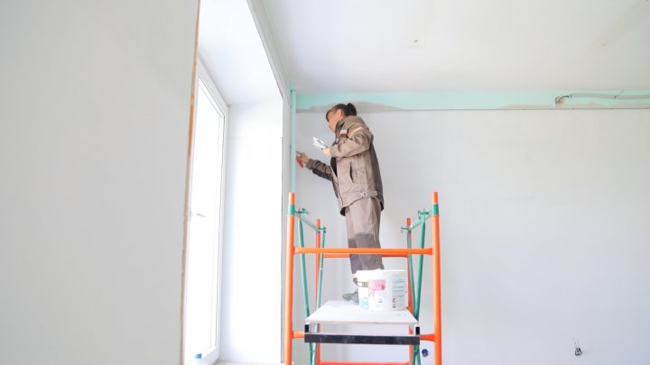 Олеся БУЛАНОВА – бригадир: Шпаклевка на второй раз, шлифовка начинается, к концу недели начнется покраска на первый слой, потом дальше выключатели делаются, освещение, потолки.